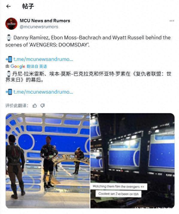 漫威影业正在英国拍摄的超等英杰电影《复仇者定约5:拔除日》近日发生片场表现事件,三位变装的定妆照在网上曝光,激发影迷热议。相片由酬酢媒体账号“MCUnewsrumors”发布,展示了三位主要变装身穿戏服在配景中合体亮相,背景以蓝幕为主,场景疑似设定在寰宇飞船的戒指舱内。