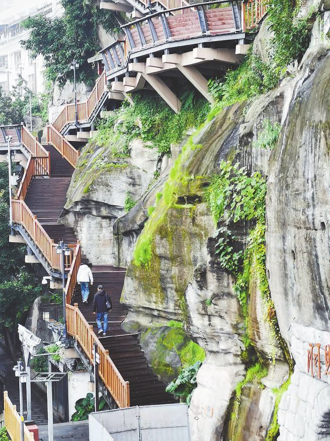 渝中区的戴家巷位于魁星楼和洪崖洞之间的崖壁上,仍是商贾云集、车马喧嚣。自后沦为了破旧的棚户街区,住户出行未便,崖壁杂草丛生。2018年,渝中区政府对戴家巷进行“微更新”立异,对720闲居米老建筑进行加固开辟。在垂直落差60米的斜坡上修建1100米的崖壁步谈,向东可平视洪崖洞风俗风貌区的层叠楼阁,向北能纵眺宏伟的千厮门大桥,眼下是奔腾的嘉陵江水,组成一幅古今团结的神奇画卷。