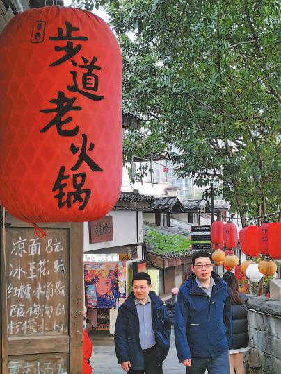 离戴家巷仅2公里的山城巷,亦然一条集历史风貌、山城特质和崴蕤江景于一体的代表性步谈,全长1748米,其中临崖栈谈300米,是重庆古城墙步谈的一条迫切支线。立异时秉捏“修旧如旧”理念,保留了80%的原有建筑,同期新建生态游园,引入文创、咖啡等新业态,打造千里浸式消耗场景,有近百家商户入驻。来自青海的旅客马女士和一又友花55元,在“梯坎茶舍”点了一盏热茶,看着晚霞将长江水面染得通红,赞好意思谈:“这种嗅觉终点奇妙和好意思好。”在“步谈老暖锅”店,来自山东的旅客刘先生一家三口,花190元感受了贞洁的麻辣暖锅,还回味了冰豆花、红糖冰粉、糯米团、麻花等风范小吃。