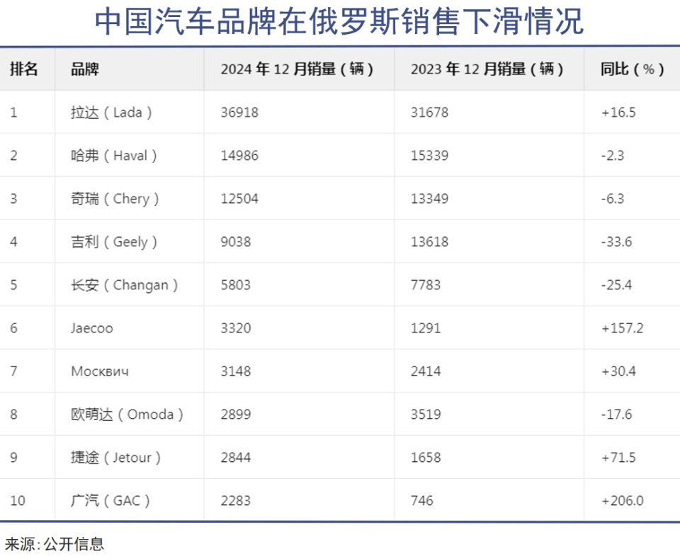2023年,俄罗斯市集销量第一的汽车品牌仍然是Lada,不外从第二至第七位,一起换成了中国汽车品牌。