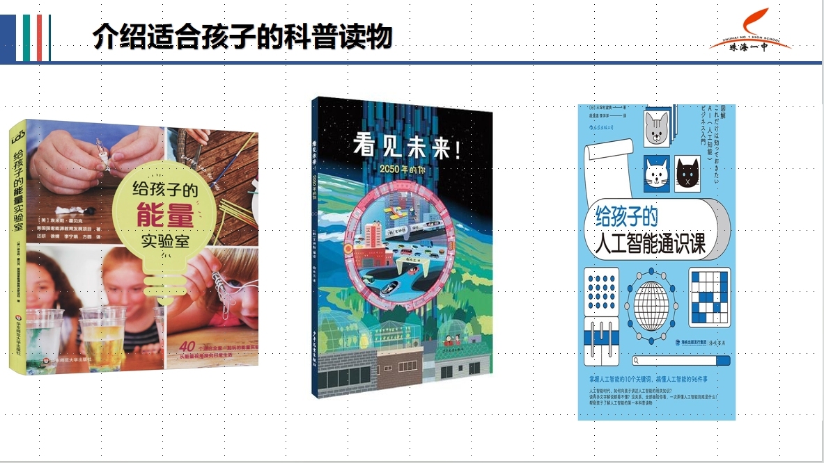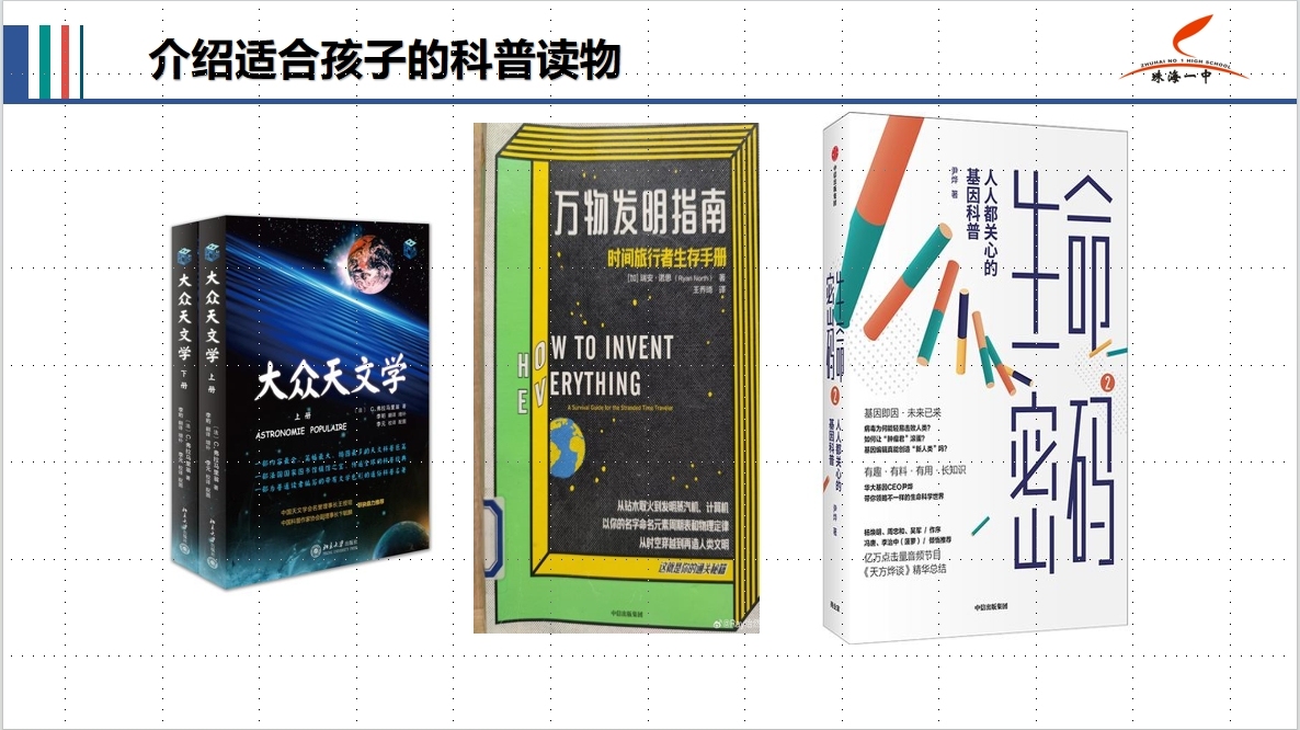 阅读优质科普读物、不雅看优质科普科目,是培养学生科学家精神的进军阶梯之一。课上,张六安保举了10套涵盖多个科学范畴、符合孩子阅读的科普读物。