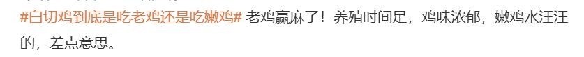 也有网友以为老鸡更有嚼劲,越吃越上瘾,嫩鸡则显得软塌塌,零落灵魂。
