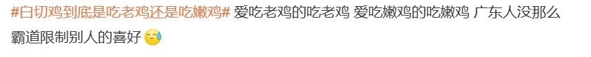 还有网友暗意,爱吃老鸡就吃老鸡,爱吃嫩鸡就吃嫩鸡,广东东说念主并不适度别东说念主的取舍。