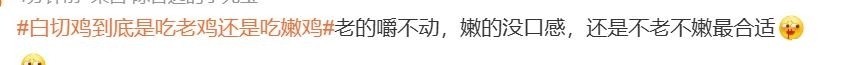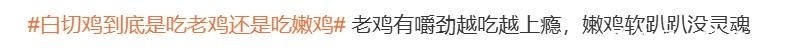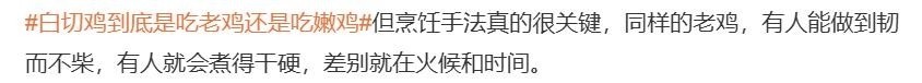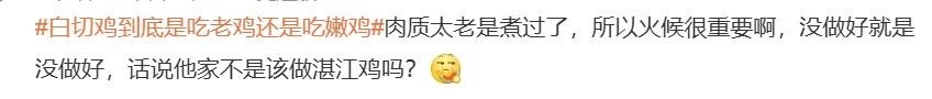 节目播出后,对于白切鸡应选用老鸡照旧嫩鸡的问题飞速激发了网友热议。