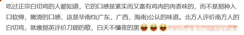 有网友指出:着实吃过正统白切鸡的东说念主齐知说念,它的口感是紧实且裕如鸡香味的,不是那种进口即化的软嫩口感,这是华南地区开阔采纳的滋味。就像朔方东说念主评价南边的白切鸡,就如同那英评价刀郎的歌,彼此交融不了。