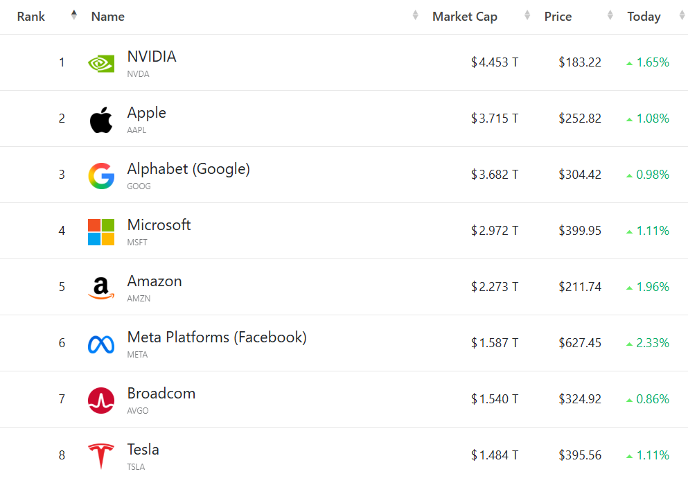 大型科技股集体走强,(按市值罗列)苹果涨1.08%,谷歌C涨0.98%,微软涨1.11%,亚马逊涨1.96%,Meta涨2.33%,博通涨0.86%,特斯拉涨1.11%。